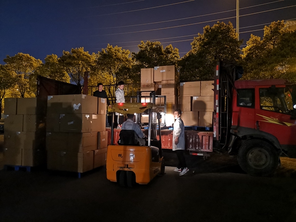 物料團隊通宵達旦裝車發(fā)貨
